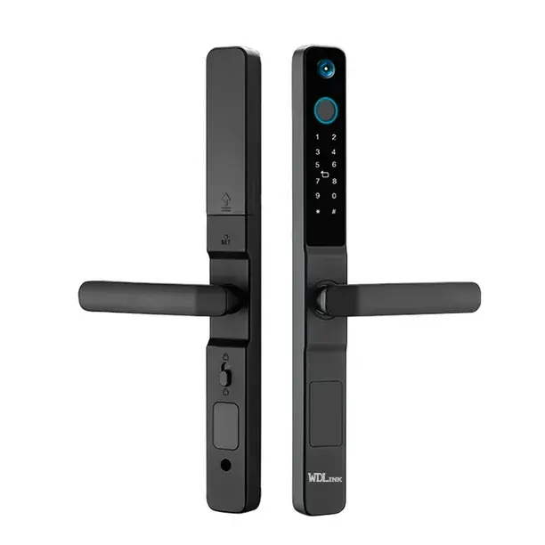 Serrure de porte électronique intelligente sans clé,caméra étanche, empreinte digitale extérieure, TUYA,WIFI, code de carte LED RFID, aluminium, verre coulissant